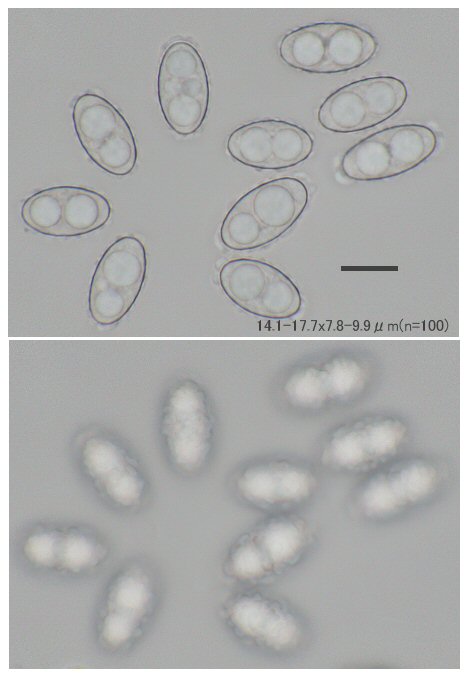 ほぼ同形のシスチジアが見られる。シスチジアの形態・胞子の形態から