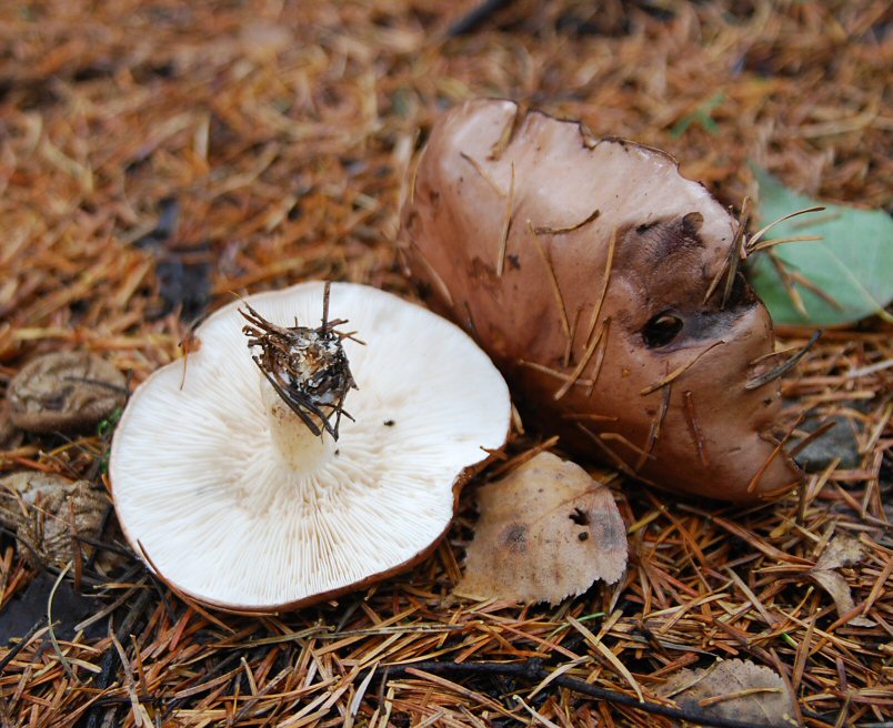 オオカキシメジ・・・傘に比べて柄が短く、白い(古くなるとシミ)