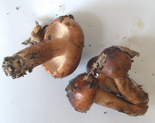 カキシメジモドキ・・・柄は傘と同色であるが上部は少し白い