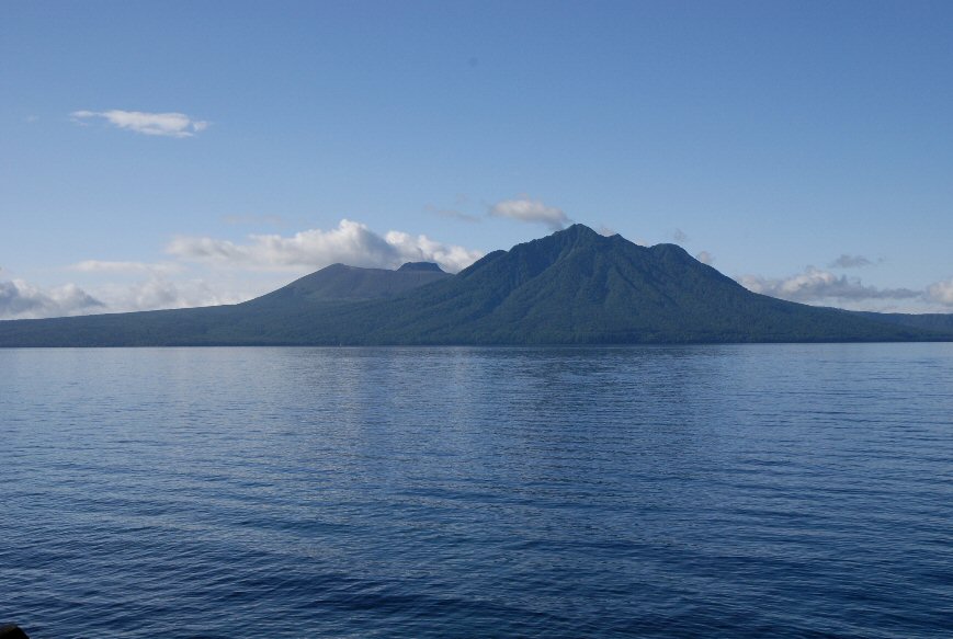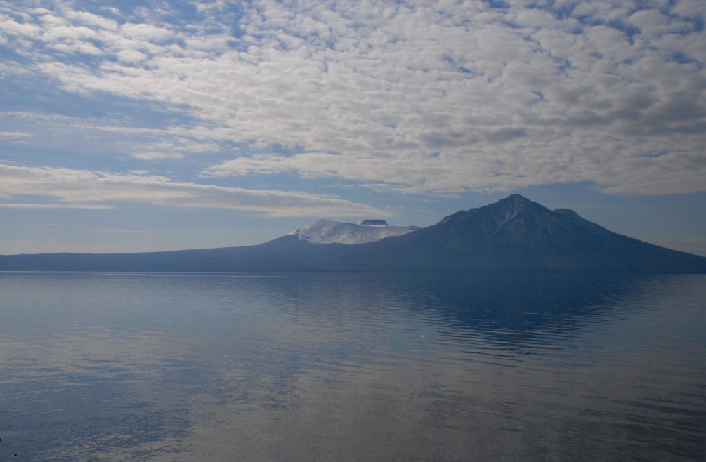 左に見える山は恵庭岳。中央の奥に見える山は漁岳。