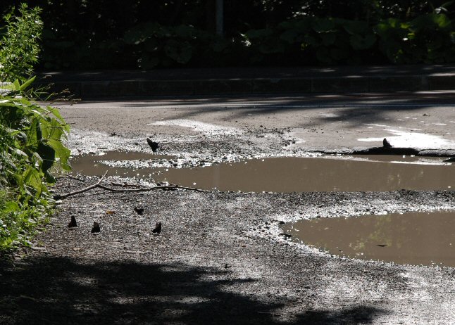 昨日は雨降りで、水溜りが出来たところに