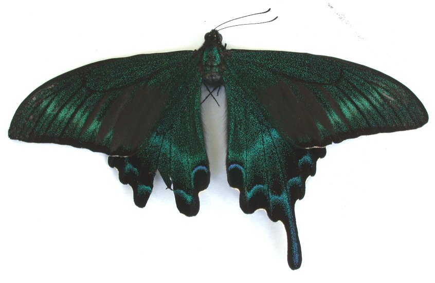 光の加減で、鱗粉によって色が変わって見える。