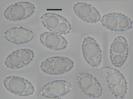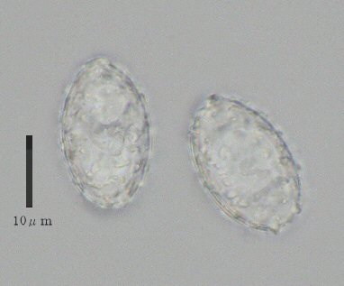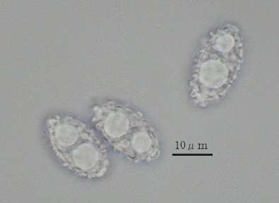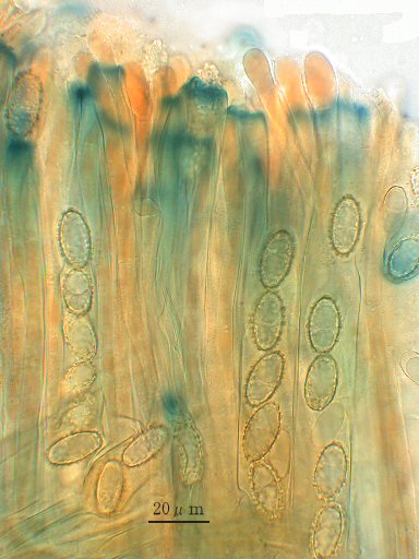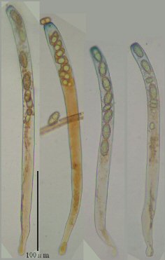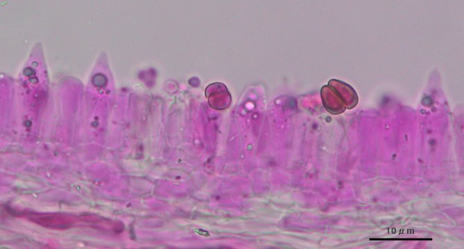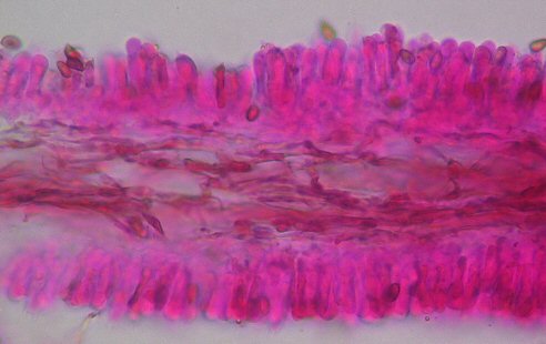 しかし、乾燥標本のヒダを一枚取り、切片をつくりのぞいて見ると、確かに側シスチジアはなかった。