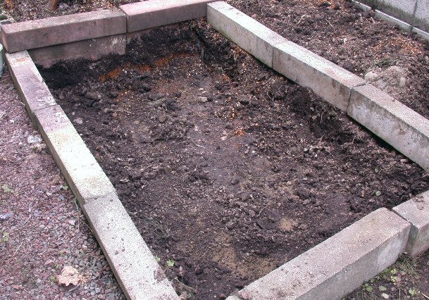 穴の周りを在り合わせのミンチ石で囲った(並べ方が雑で恥ずかしい)。