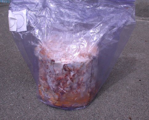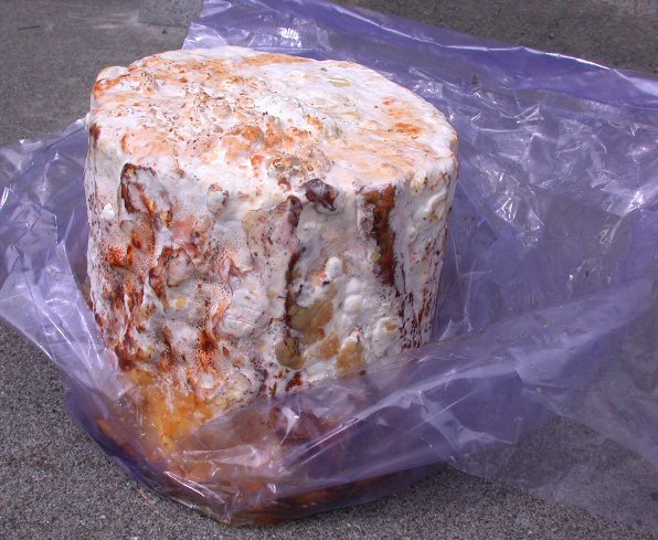 袋に入った割れた子実体を見ると、割れた部分や触れた部分と思われるところが