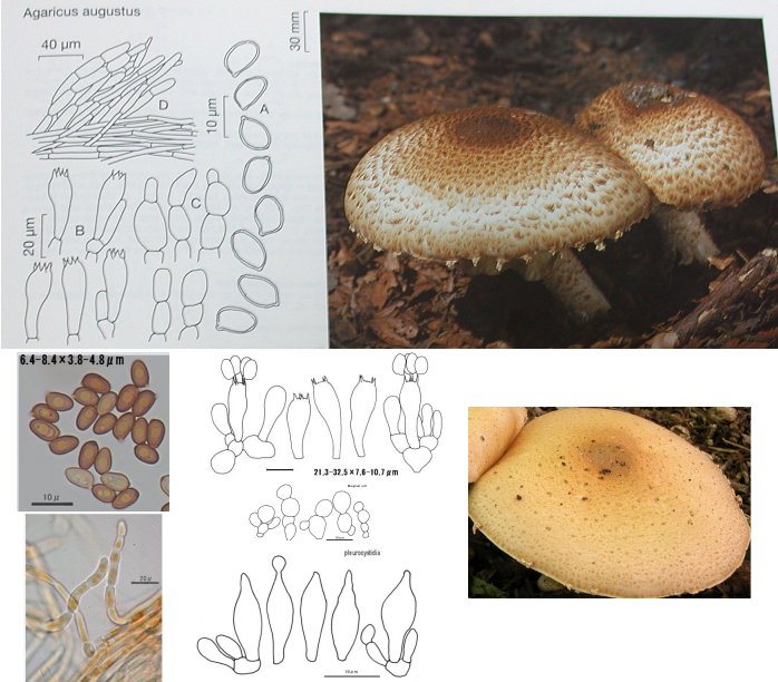 下の写真は、スイスの菌類図鑑に掲載されているAgaricus augustusと比較するために作ったもの。上がA. augustusで下がキハラタケ(?)。