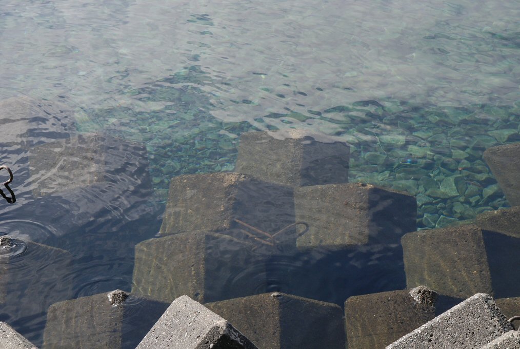 6月頃から7月頃にかけ湖水につかっているテトラポットにはたくさんの藻類がついていた。