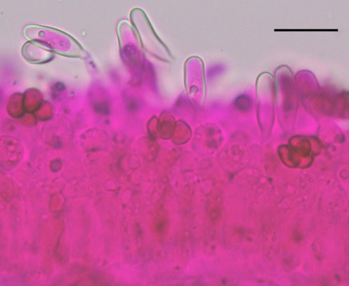 たぶんヒダの縁には縁シスチジアに似たマージナルセルがあると思われるので